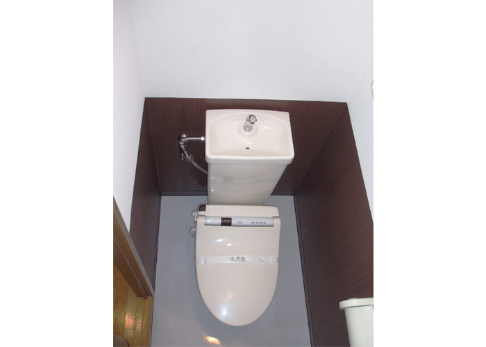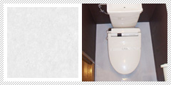 トイレには光沢あるフロアタイルを使用し、