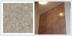 大理石調のフロアタイル(床材)を壁面に貼り