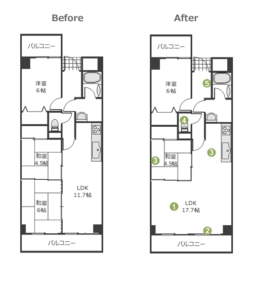 - 3LDKの間取りを現在の生活に合わせた2LDKに変更