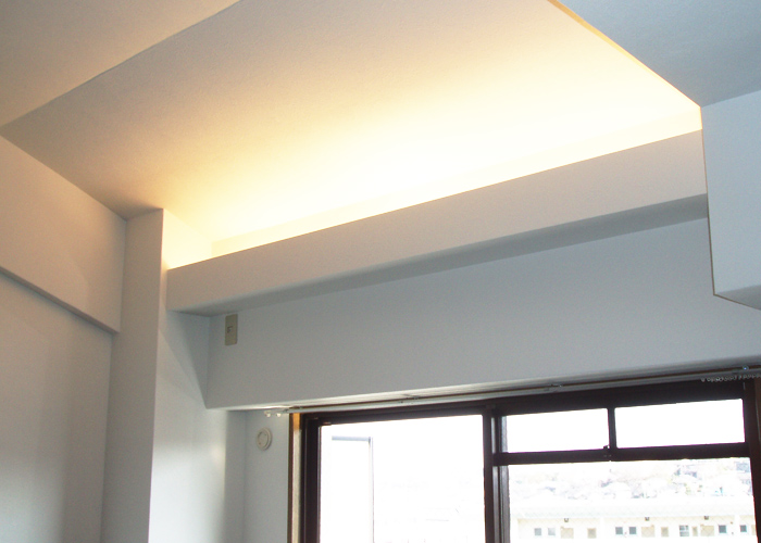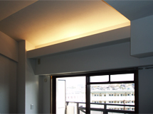 - 広くなったリビングの掃き出し窓の上部に間接照明を取付