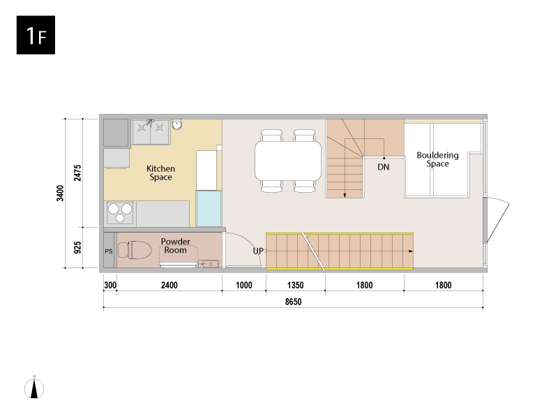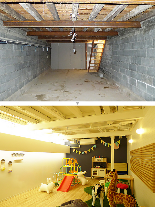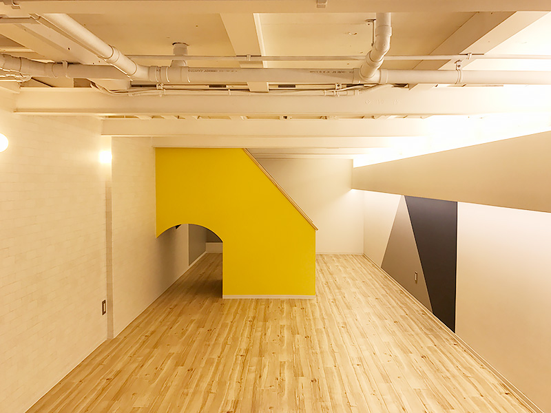 - 地下と1階の階段の位置が決まっていなかったので、外から見えるように吹き抜けにして、地下1階のボールプールとボルダリングの壁が見えるよう提案させていただいたのは、良い感じに仕上がった!と思っています(笑)