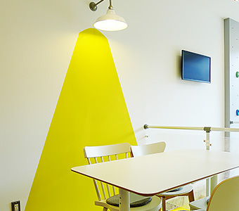 私は元々ピンクと思っていたのですが、コンセプトカラーに合わせて階段や椅子を黄色にとか提案をいただいて、試行錯誤しているうちにほど良い可愛さと明るさが前面に出てきて、満足できる最終形にたどり着いた、黄色で断然良かった、という感じです。