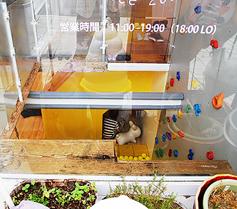 外からでも覗き込んでくださるとボールプールが見えるので、皆さん覗いて行かれますね。施工の時から興味を引いていたようです。