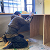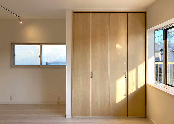 既存建具を加工して使用、造作家具を大工さんが全て制作することでコストダウンを図りました。